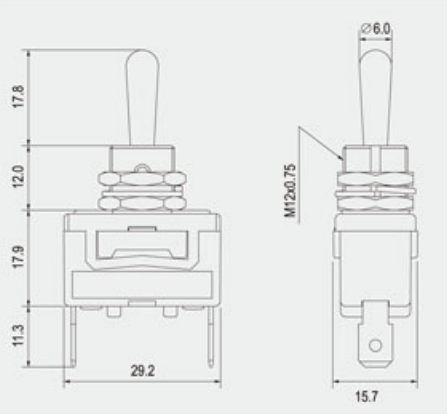 Tip: vgradno stikalo s funkcijo OFF-(ON). (stikalo ne ostane v ON poziciji ampak se vrne v izhodiščni položaj)