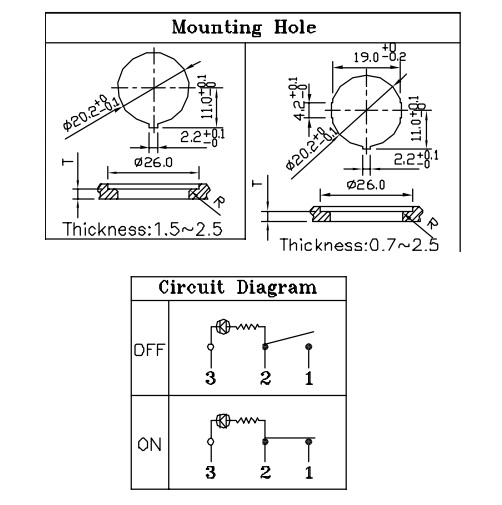 Mere za vgradnjo: luknja fi 20.2mm, debelina največ 2.5mm