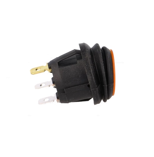 Stikalo okroglo OFF-ON, 28v DC 10A, oranžna/zelena osvetlitev, fi 20.2mm vgradno, 4.8mmx3, IP65, S