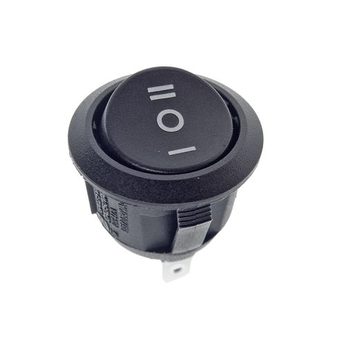Stikalo okroglo ON-OFF-ON, 6A 250V AC, vgradno fi 20.2mm, SC