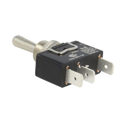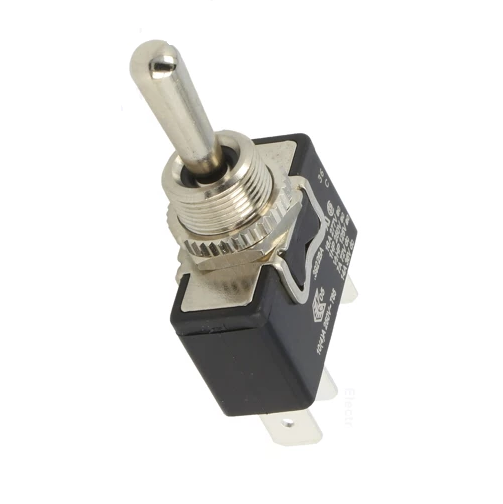 Univerzalno kovinsko stikalo (I)-0-(I) (vklop navzgor s povratkom-izklop-vklop navzdol s povratkom), kar pomeni, da je stikalo vklopljeno samo ko ga držimo navzgor ali navzdol in se potem avtomatsko vrne v izhodiščni sredinski položaj