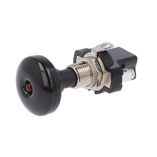 Potezno stikalo vklop-izklop z zeleno led osvetlitvijo 12v. Pred montažo je potrebno odstraniti glavo stikala z obratom v levo.