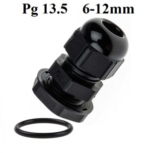 Univerzalna uvodnica črne barve za kabel debeline od 6-12mm s patentiranim mehanizmom zaklepa. Priložena matica za pritrditev v ohišje in UV odporno O-ring tesnilo, ki poskrbi za zaščito tudi med uvodnico in ohišjem.