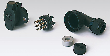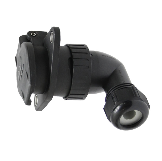 Vtičnica 7 polna, 24v, Tip N-črna, 7x moški pin, vrtljiva kotna uvodnica, kabel čevlji 6.3, KK