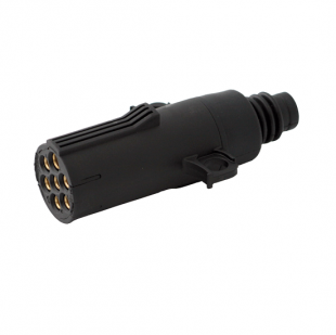 7 polni plastičen vtikač tip N s črnim ohišjem in z uvodnico se uporablja na 24v tovornem programu. Priklop kabla z vijačenjem.