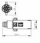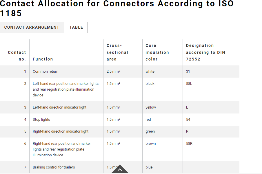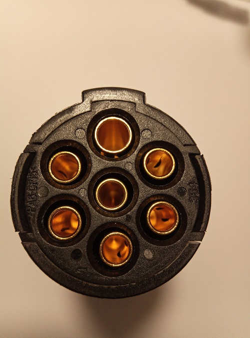 Ima 7 ženskih kontaktov od tega je skrajno zgornji nekoliko večji. Vezava po standardu DIN/ISO 1185-shema na sliki.