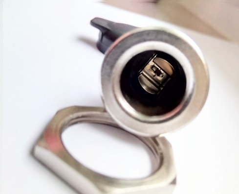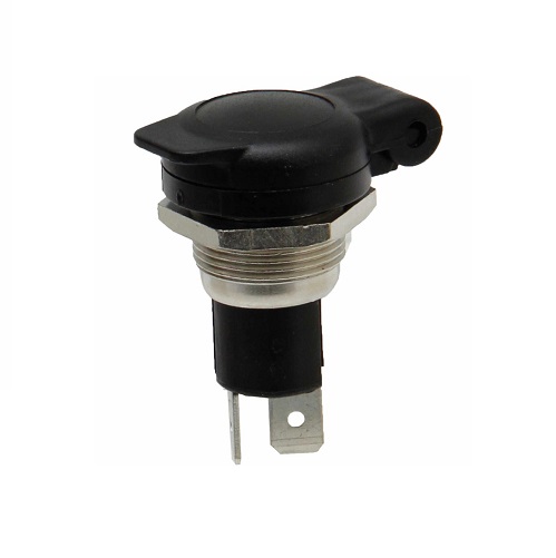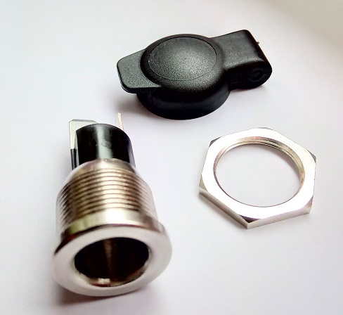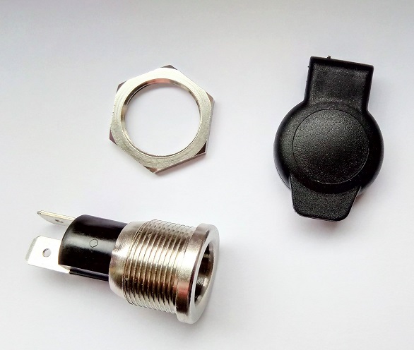 Kvalitetna vgradna vtičnica mini-fi 12mm za napajanje porabnikov. S pokrovom ter matico. Priklop z ženskimi kabel čevlji 6.3mm.
