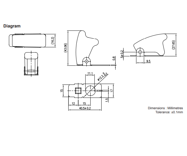 Varnostna zaščita uporabna za klecna stikala ON-OFF s sredinskim navojnim delom 12mm in dolžino ročice cca 20mm.