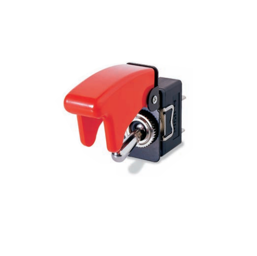 Za vklop stikala moramo rdeč pokrov najprej privzdigniti. Stikalo se avtomatsko izklopi ko pokrov zapremo.
