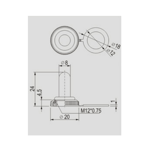 Univerzalna zaščitna guma za klecna stikala s sredinskim navojnim delom M12x0.75 (fi 12mm) in dolžino vzvoda stikala cca 20mm