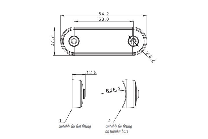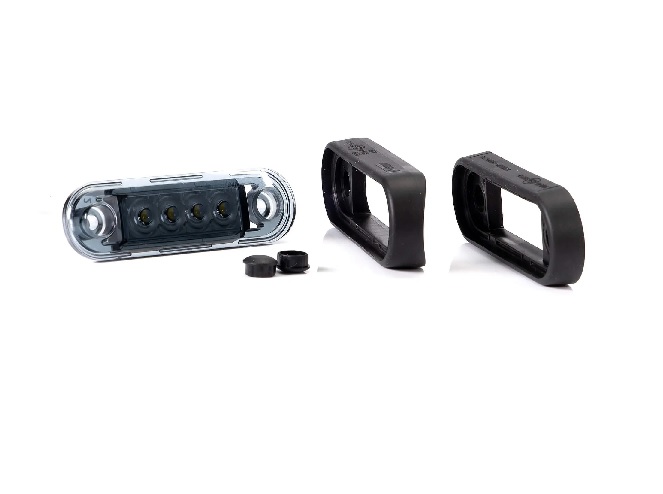 Luč pozicijska BELA LED 12-24v, kratka, DARK zatemnjen izgled, 84x28mm, 2x tesnilo, razmak vijakov 58mm, kabel 150mm,FR