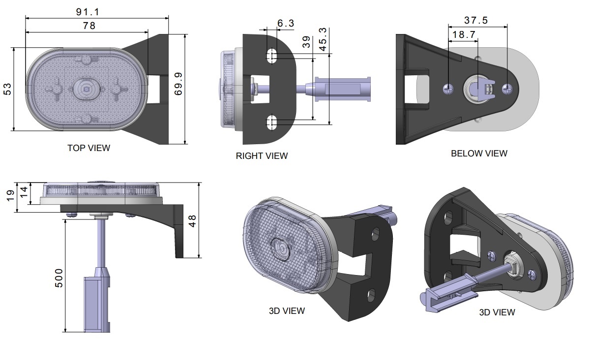 Kvalitetna univerzalna LED bela pozicijska lučka z odsevnikom primerna za montažo na prednji del 12v avtoprikolic. Na nosilec je pritrjena z dvema vijakoma, kar nam omogoča, da jo obrnemo horizontalno ali vertikalno, z odstranitvijo nosilca pa z manjšo predelavo tudi direktno na ravno površino. Možnost enostavnega in učinkovitega priklopa s hitrim priključkom za na ploščati kabel 2x1.5mm.