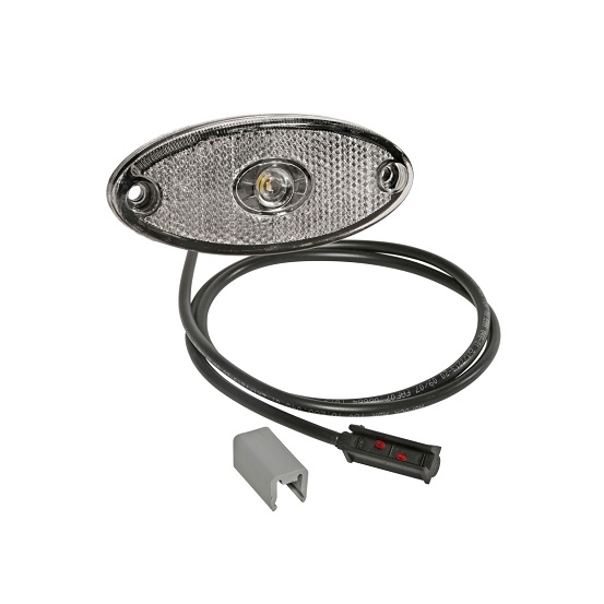 Univerzalna LED prednja lučka ovalne oblike z odsevnikom je pogosto vgrajena na 24v tovornih vozilih in prikolicah. S kablom dolžine 0.5m s hitrim priključkom za priklop direktno na ploščati kabel 2x1.5mm. Primerna za montažo direktno na površino ali z nosilcem za doplačilo. Na zalogi tudi v izvedbi s kablom dolžine 3.5 metra-pokličite za naročilo
