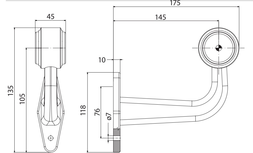 Luč pozicijska gabaritna LED, STANDARD-175mm L, 12-30v, kabel 0.4m+klik in1.5, LEVA ali DESNA, FR