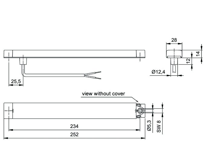 Luč vzvratna LED 9-32V, 252x28mm, kabel 500mm, L250 Jokon