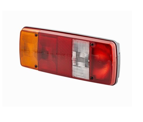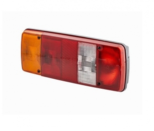 Univerzalna zadnja leva luč na žarnice je primerna za 12 ali 24v vozila (VW, JCB FASTRACK, DAF, IVECO, MAN...) Dobava brez žarnic.