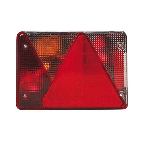 Zadnja večfunkcijska leva luč na žarnice z vgrajenim trikotnikom. Primerna za avtomobilsko prikolico.