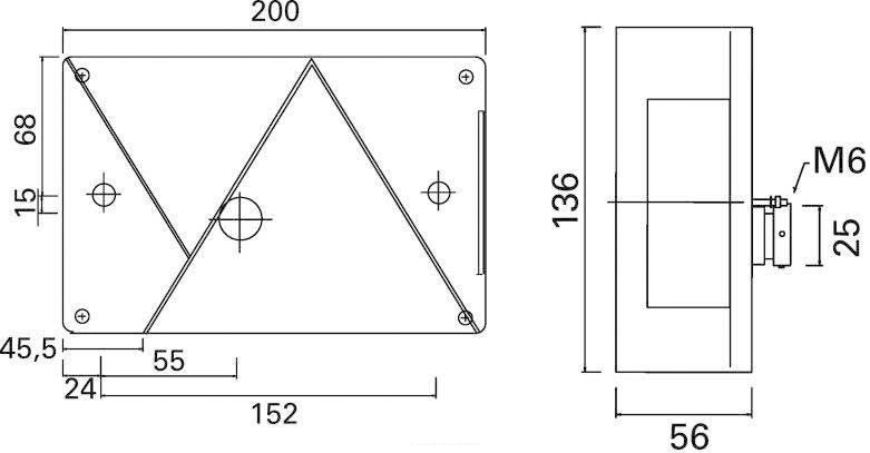 Mere dxšxv: 200x136x59mm, razmak med vijaki 152mm