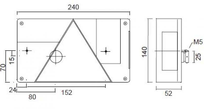 Mere dxšxv: 240x140x52mm, razmak med vijaki 150mm