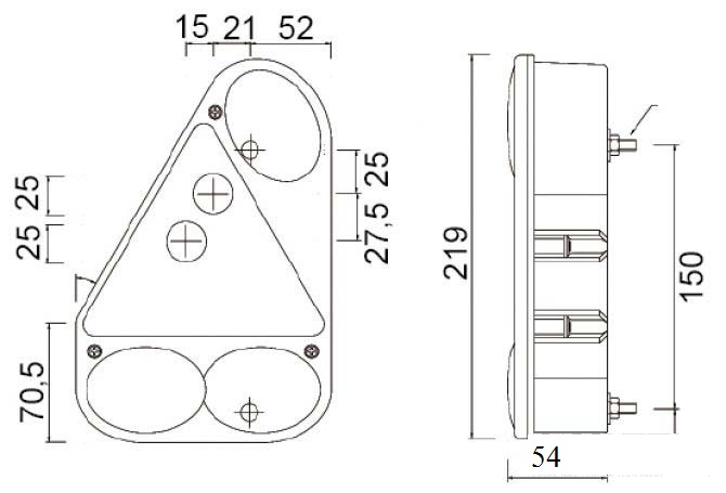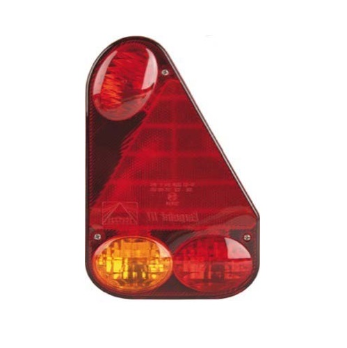 Zadnja večfunkcijska desna luč na žarnice z vgrajenim trikotnikom. Primerna za prikolice z rampo-pogosto montirana na prikolicah za prevoz konj in živine.