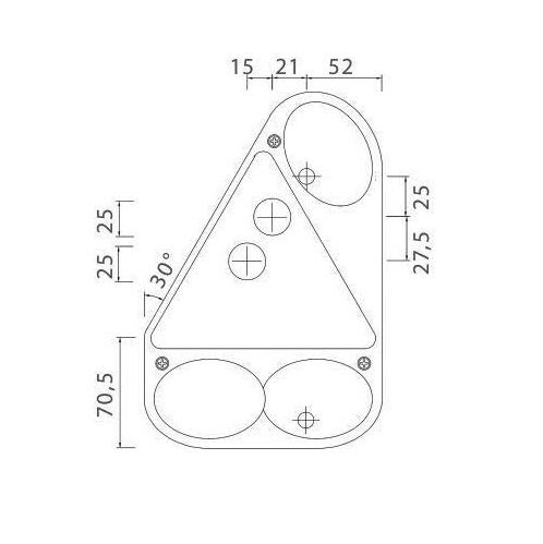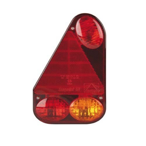 Zadnja večfunkcijska leva luč na žarnice z vgrajenim trikotnikom. Primerna za prikolice z rampo-pogosto montirana na prikolicah za prevoz konj in živine.
