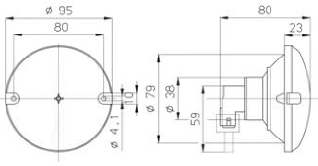 Vgradna zadnja luč fi 95mm s prozornim steklom. Pogosto montirana na avtodomih in kamp prikolicah v kombinaciji z ostalimi svetili iz iste serije-710.