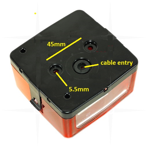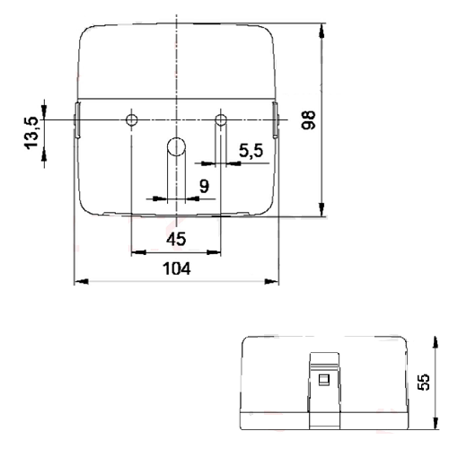 Mere dxšxv: 104x98x55, razmak med vijaki 45mm. Fi luknje za pritrditev 6mm