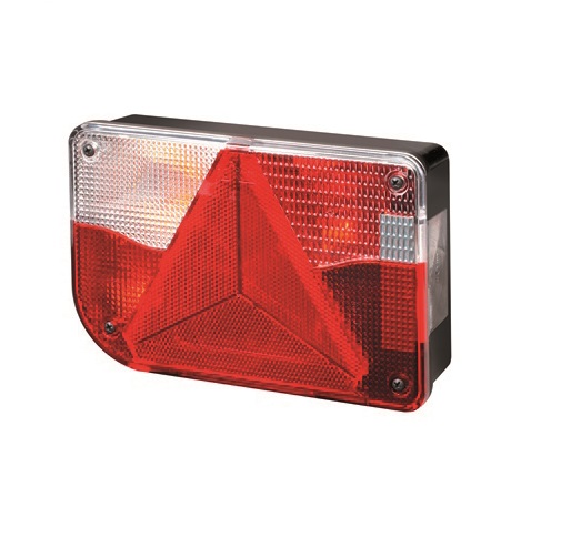 Zadnja večfunkcijska LEVA luč na žarnice z vgrajenim trikotnikom. Primerna za avtomobilsko prikolico