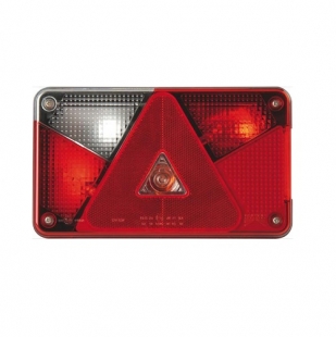 Zadnja večfunkcijska leva luč na žarnice z osvetlitvijo registrske tablice in vgrajenim trikotnikom. Primerna za avtomobilsko prikolico