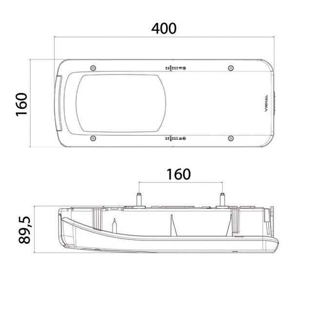 Mere: dolžina x višina x globina: 400x160x90mm, razmak med vijaki 160mm