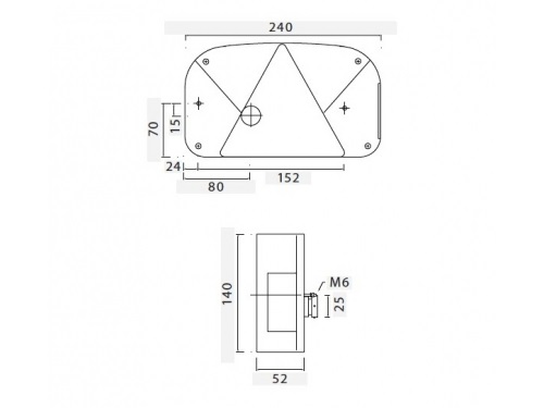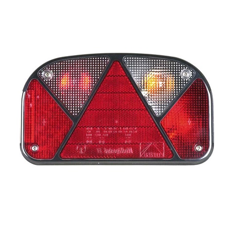 Zadnja večfunkcijska desna luč na žarnice z vgrajenim trikotnikom. Primerna za avtomobilsko prikolico