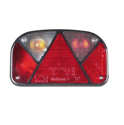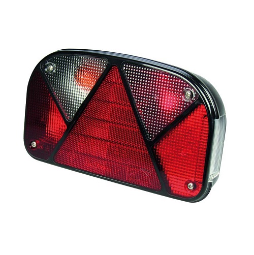 Zadnja večfunkcijska leva luč na žarnice z vgrajenim trikotnikom. Primerna za avtomobilsko prikolico