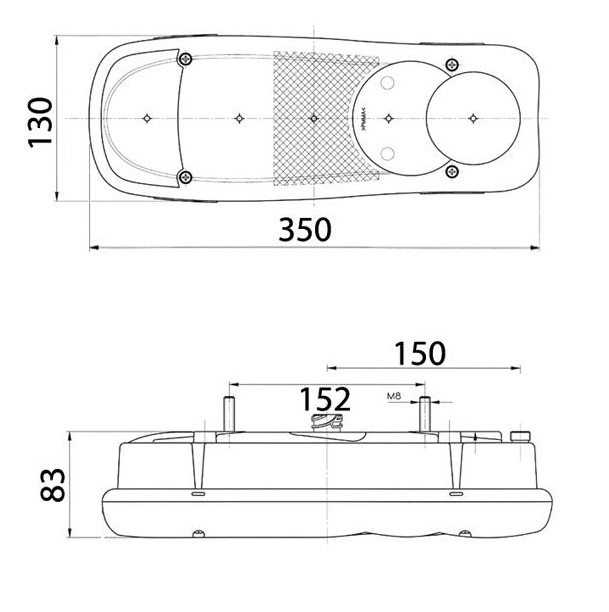 Mere: dolžina x višina x globina: 350x130x83mm, razmak med vijaki: 152mm