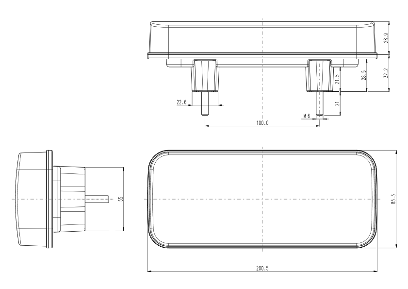 Mere: dolžina x višina x globina: 200x85x40(61)mm z adapterjem, razmak med vijaki 100mm