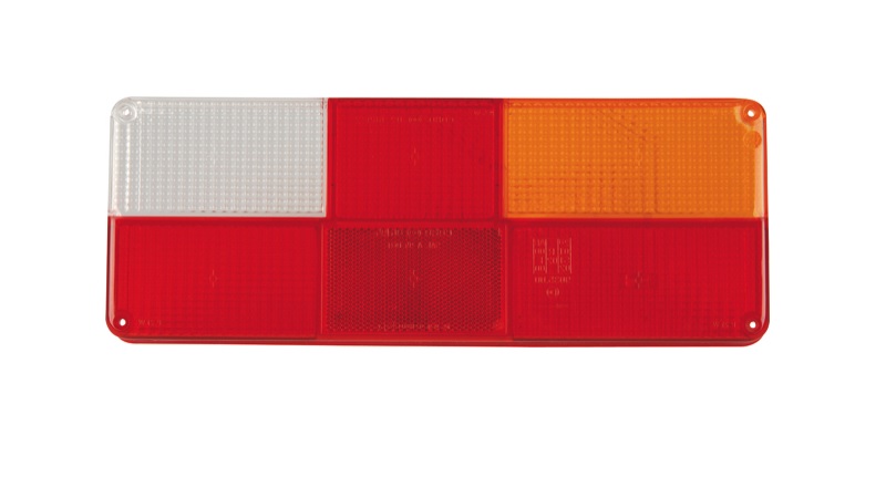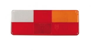Steklo za zadnjo desno stop luč starejših vozil Iveco Eurocargo, Eurotech, Turbostar.. Pritrditev z 4 vijaki.