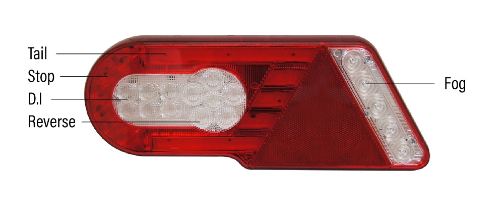 Funkcije: LED pozicija v neonskem stilu, LED štop, LED smernik, LED vzvratna, LED meglenka, odsevni trikotnik
