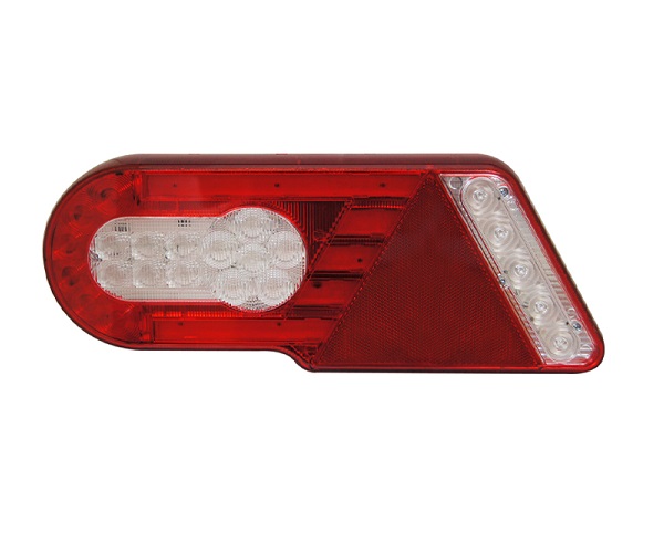Zadnja 5 funkcijska LEVA LED luč z vgrajenim trikotnikom je zelo tanke izvedbe in je primerna za montažo na večje tovorne prikolice.